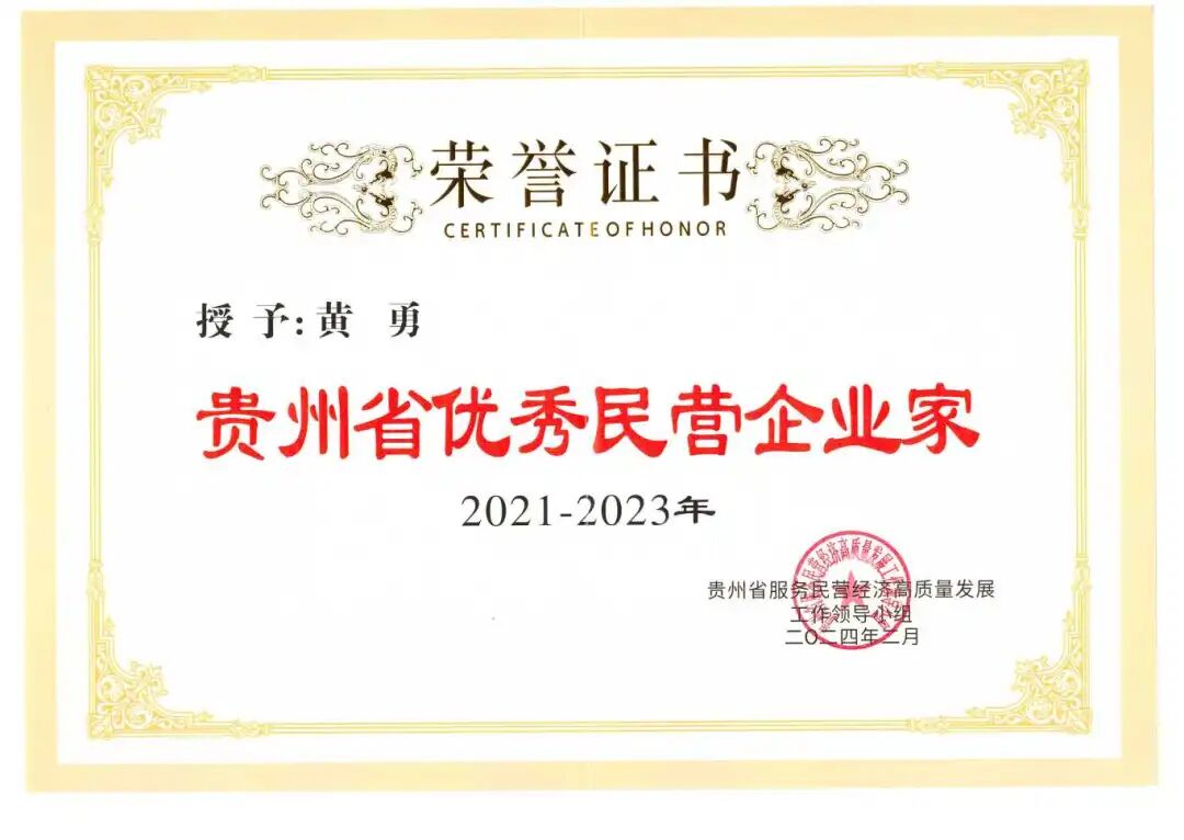 2月27日上午,贵州省民营经济高质量发展暨营商环境建设大会在贵阳召开。大会对2021—2023年贵州省杰出民营企业家、行业领军民营企业家、优秀民营企业家(131名)进行了表彰。我省4名致公党党员榜上有名,分别是: